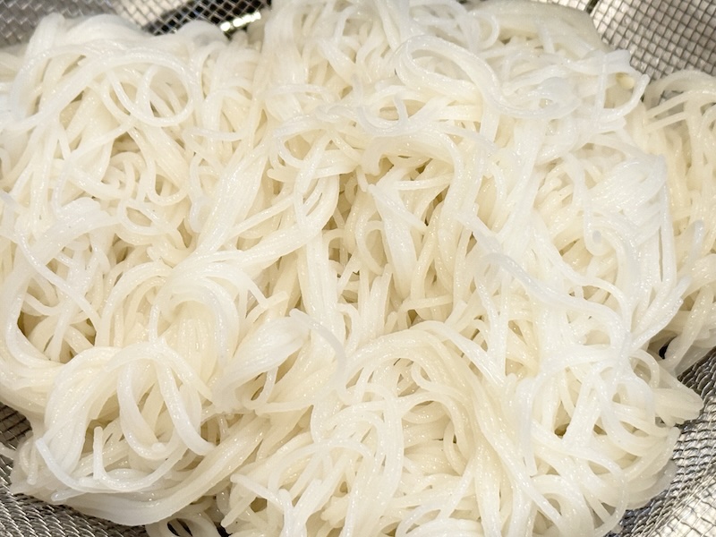 ビーフンは茹でた後くっつきやすくなるので、少量の油をかけてくださいね!