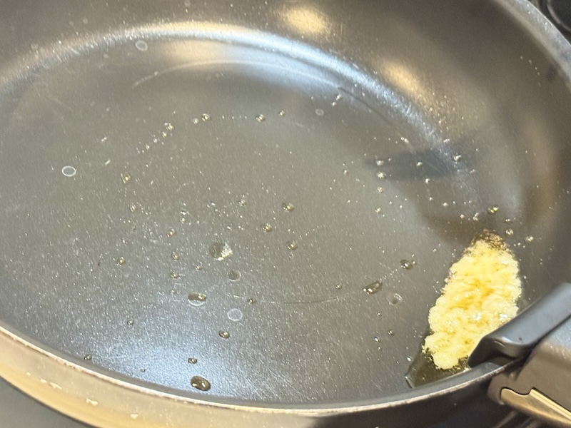 ニンニク、生姜、ネギを炒める
