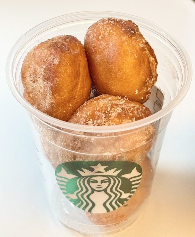 同じプラントベースのシュガードーナツは砂糖のコーティングですが、このボールのドーナツはグラニュー糖のようなジャリジャリとした砂糖がかかっています!